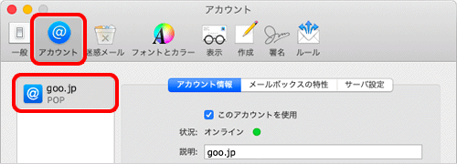 メールソフトでの送受信(Mac OS X/POP)
