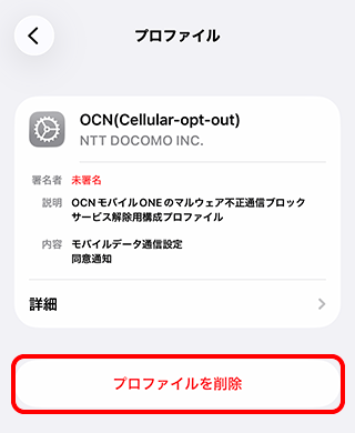 OCN モバイル ONE - iOS:マルウェア不正通信ブロックサービスの利用を再開したい