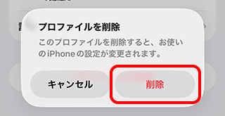 本手順はWi-Fiでインターネットに接続して行ってください(データ通信接続で既存プロファイルを削除するとインターネット接続が切れるため、新しいプロファイルのダウンロードができなくなります)。