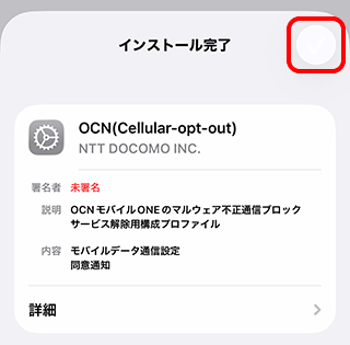 ※またはSafariで本手順ページを表示し、以下のリンクをタップします。http://s.ocn.jp/opoprf(マルウェア不正通信ブロックサービス解除用構成プロファイル ダウンロードページURL)