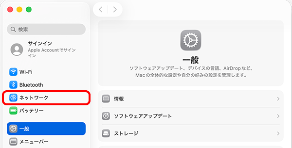 システム設定画面が表示されます。[ネットワーク]をクリックします。