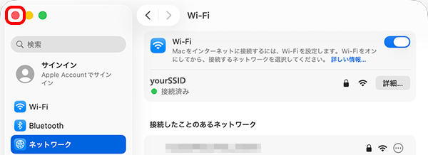 画面左上の[●閉じる]をクリックします。以上で設定は完了です。