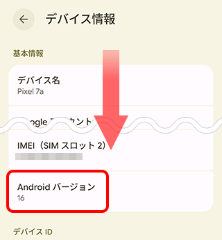 ※ 手順の例では、Android バージョン 16を使用していることになります。