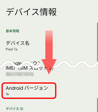 ※ 手順の例では、Android バージョン 16を使用していることになります。