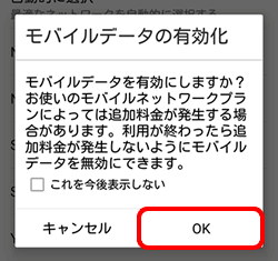 [モバイルデータの有効化]画面が表示された場合は、[OK]をタップします。