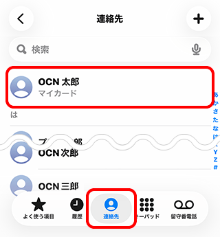 [連絡先]をタップ後、[リスト]画面が表示された場合