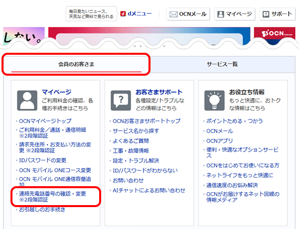 PC版のOCN マイページから、連絡先電話番号を変更する方法をご案内します。