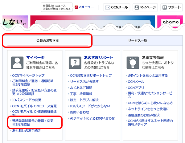 PC版のOCN マイページから、連絡先電話番号を変更する方法をご案内します。
