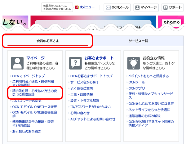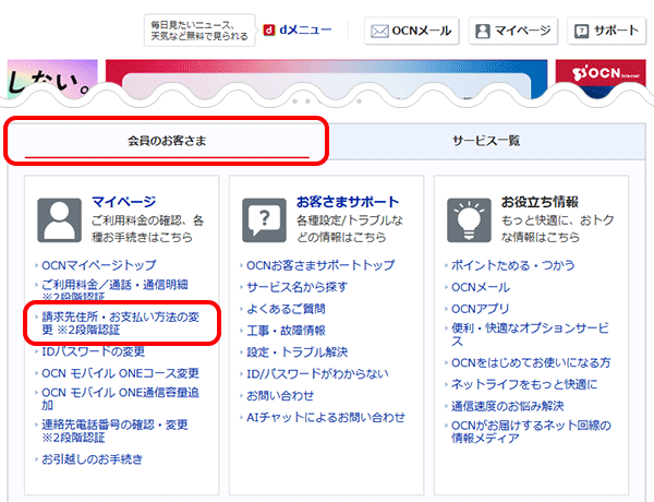 OCN マイページから請求書送付先住所を変更する方法をご案内します。