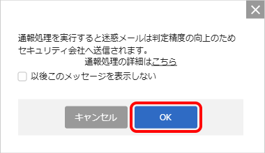 迷惑メール判定結果の間違いを、判定精度向上のためにお客さまからお知らせいただく機能です。
