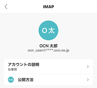| 説明 | アカウントの一覧に表示したい名称を入力 例)「OCN」「仕事用」など |