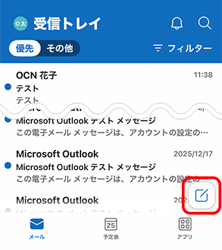 新しいメール]をタップします。