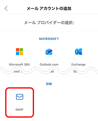 | IMAP ユーザー名 | メールアドレスを入力 |