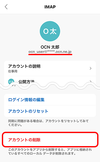 | IMAP ホスト名 | imap.ocn.ne.jp と入力 |