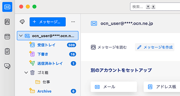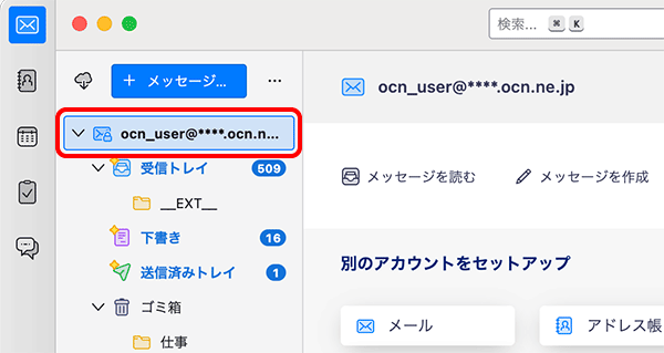 OCNのメールアドレスをメールソフトにIMAPで設定すると、自動的にフォルダーが生成されます。