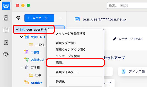 [INBOX][Sent][Drafts][Trash][Junk]は、OCNメールサーバーとの同期に使用するフォルダーです。チェックをはずしてしまうと必要なメールが読めなくなるため、はずさずにご利用ください。