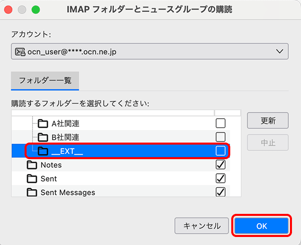 [__EXT__][Chats][Contacts][Emailed Contacts]は、OCNメールでは使用しないフォルダーです。チェックをはずしても問題ありません。
