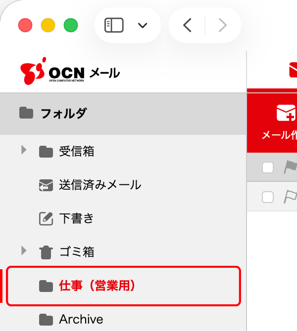 OCNメール(Webメール)でフォルダーを開けない場合に、macOSのメールを使い、フォルダー名を変更して対処する方法をご案内します。