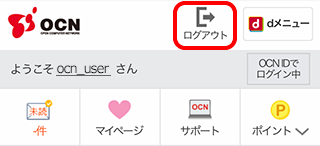 お手数ですが一旦ログアウトし、OCNのメールアドレスで再度ログインしてください。
