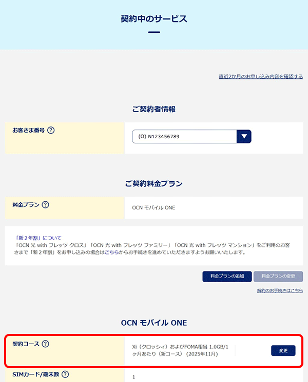 OCN モバイル ONEのご契約コースを確認する方法をご案内します。