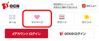 スマートフォン版OCNトップページで、[マイページ]をタップします。