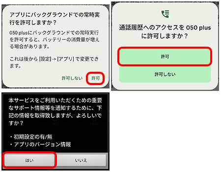 ※[許可しない]をタップすると、「050 plus」アプリの機能が制限され、利用できない場合があります。