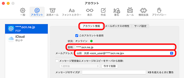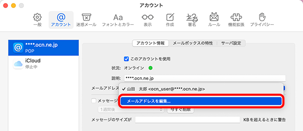 macOS Montereyで、POPで設定したOCNのメールアドレスを変更する方法をご案内します。