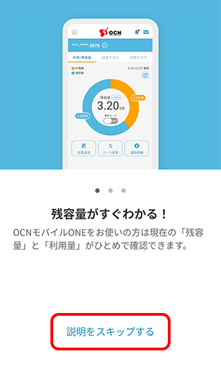 続けて、OCN アプリの各種機能を利用する場合は、以下のページを参照してください。