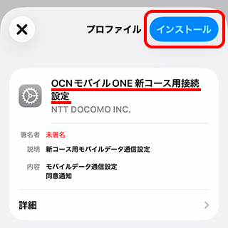 「新コース以外」用のプロファイルをダウンロードしています。OCN アプリの画面に戻り、STEP7からやり直してください。