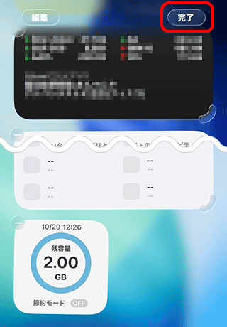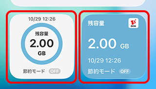※ ウィジェットでの残容量の更新、節約モードの切り替えはできません。