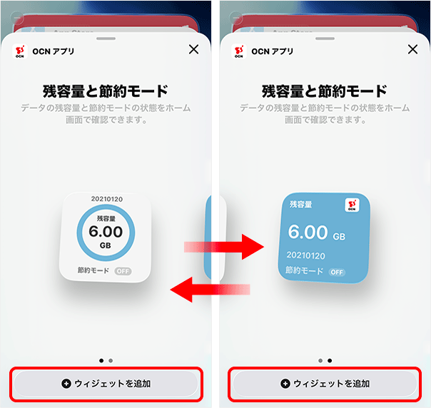 ウィジェットをタップして[OCN アプリ]を起動し、アプリから設定してください。アプリの使い方は、以下のリンクをご参照ください。