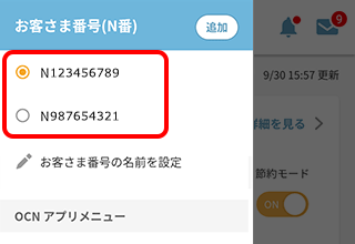 別の契約回線に切り替えるには、あらかじめお客さま番号(N番)を登録しておく必要があります。登録方法はリンク先を参照してください。