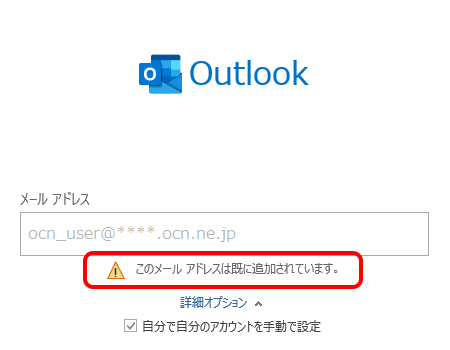 [このメール アドレスは既に追加されています]と表示された場合