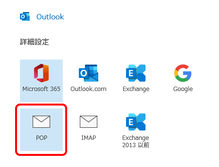 ※ POPとIMAPの違いや特徴はこちらをご参照ください。