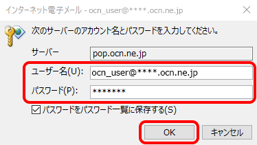 [ユーザー名]と[パスワード]を確認して正しく入力し、[OK]をクリックして次のSTEPに進みます。