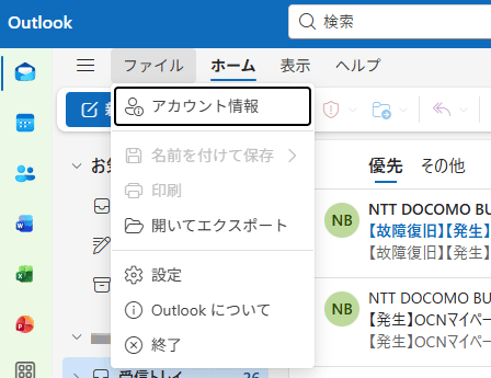 ※ Outlookが複数あり、Microsoft 365の見分け方がわからない場合は、PCに入っているOutlookの見分け方をご参照ください。