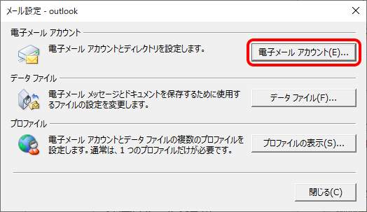 設定を確認するメールアドレスの[プロファイル名]を選択し、[OK]をクリックします。