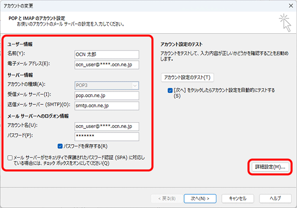 Microsoft 365で、OCNのメールアドレスの設定(POP)が正しいか確認する方法をご案内します。