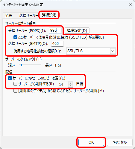 Webメールや他の端末でも同じメールを受信する場合はチェックする |