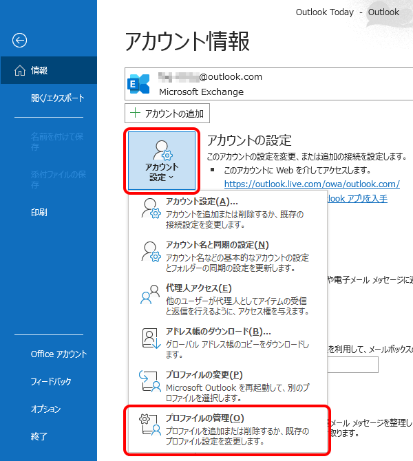 変更するメールアドレスの[プロファイル名]を選択し、[OK]をクリックします。