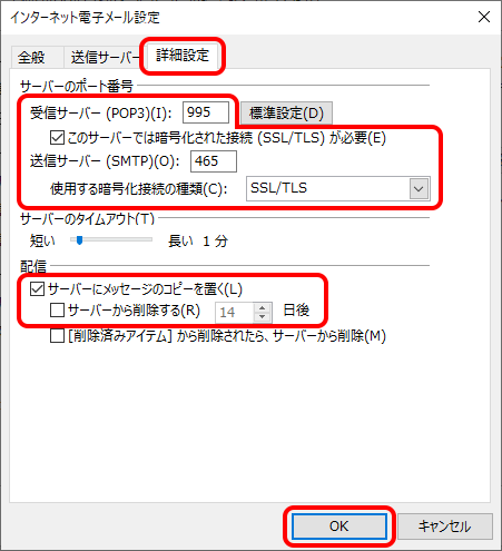 Webメールや他の端末でも同じメールを受信する場合はチェックする |