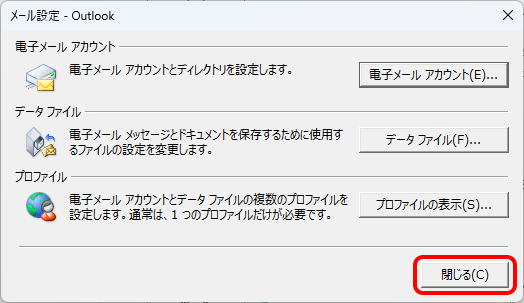 上記のように表示される場合、「Outlook for Windows / Outlook(new)」をお使いです。設定方法については、以下のリンクをご参照ください。