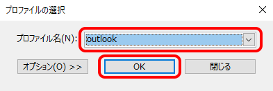 設定するメールアドレスの[プロファイル名]を選択し、[OK]をクリックします。