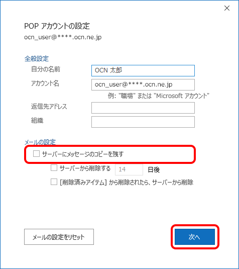 Microsoft 365で、OCNのサーバーにメールを残すかどうか設定する方法をご案内します。