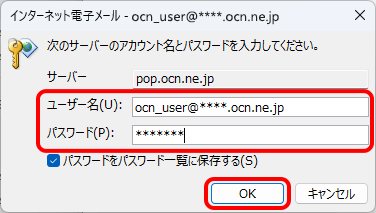 [ユーザー名]と[パスワード]を確認して正しく入力し、[OK]をクリックして次のSTEPに進みます。