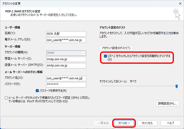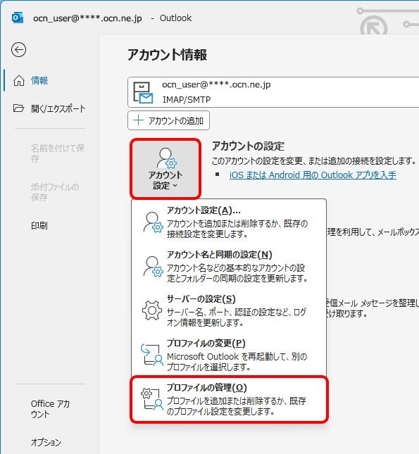 Microsoft 365で、OCNのメールアドレスの設定(IMAP)が正しいか確認する方法をご案内します。