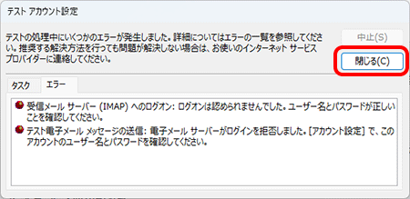 メール サーバーがセキュリティで保護されたパスワード認証(SPA)に対応している場合には、チェック ボックスをオンにしてください |