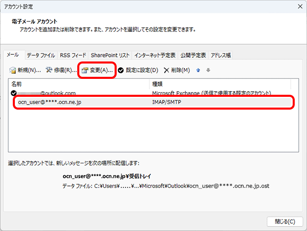 Microsoft 365で、IMAPで設定したOCNのメールアドレスを変更する方法をご案内します。