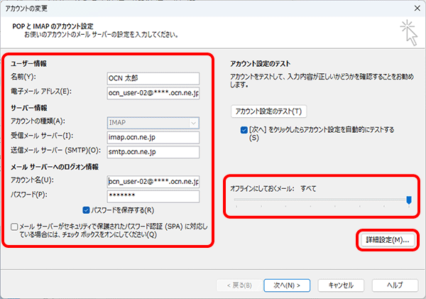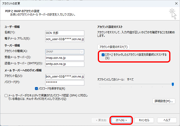 imap.ocn.ne.jp と入力 |