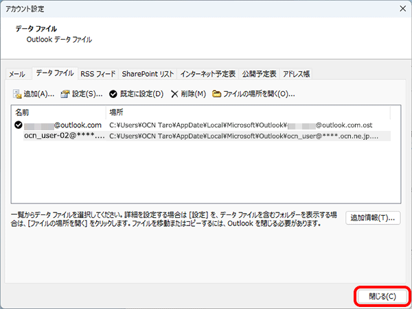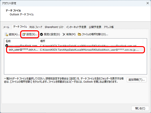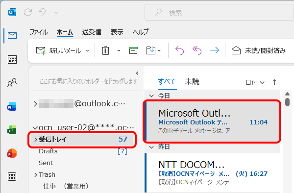 OutlookとOCNメール(Webメール)の受信トレイなどに入っているメールデータを、同期させる期間を設定する |